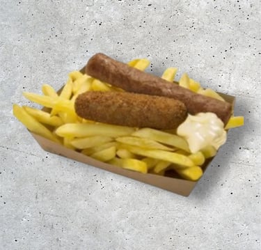 Frietjes met frikandel en sausje naar keuze à volonté € 5,80/ kind