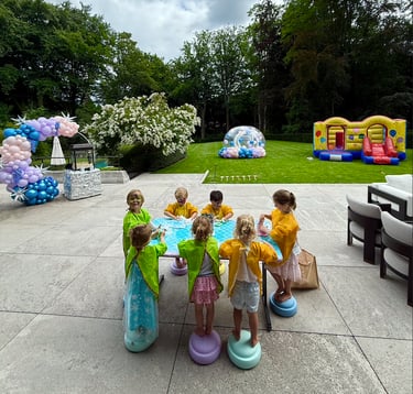 Een mooi gedekte tafel is leuk, maar hoeft zeker niet! Aangezien wij heel wat materialen mee hebben naar het feest, zetten wij alles graag op voorhand klaar. Het enige wat u hoeft te doen (indien gewenst) is de ruimte wat versieren naar wens van het kind. De tafel mag leeg blijven zodat wij deze kunnen gebruiken om alles klaar te zetten voor de activiteiten.