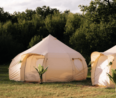 - 2 glampings: 750€/ 2 tenten voor 2 nachten/ 3 dagen. Deze prijs is exclusief verplaatsingskosten