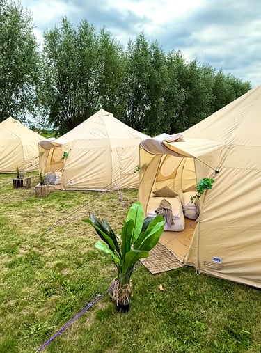 - 1 glamping: 385€/ tent voor 2 nachten/ 3 dagen. Deze prijs is exclusief verplaatsingskosten